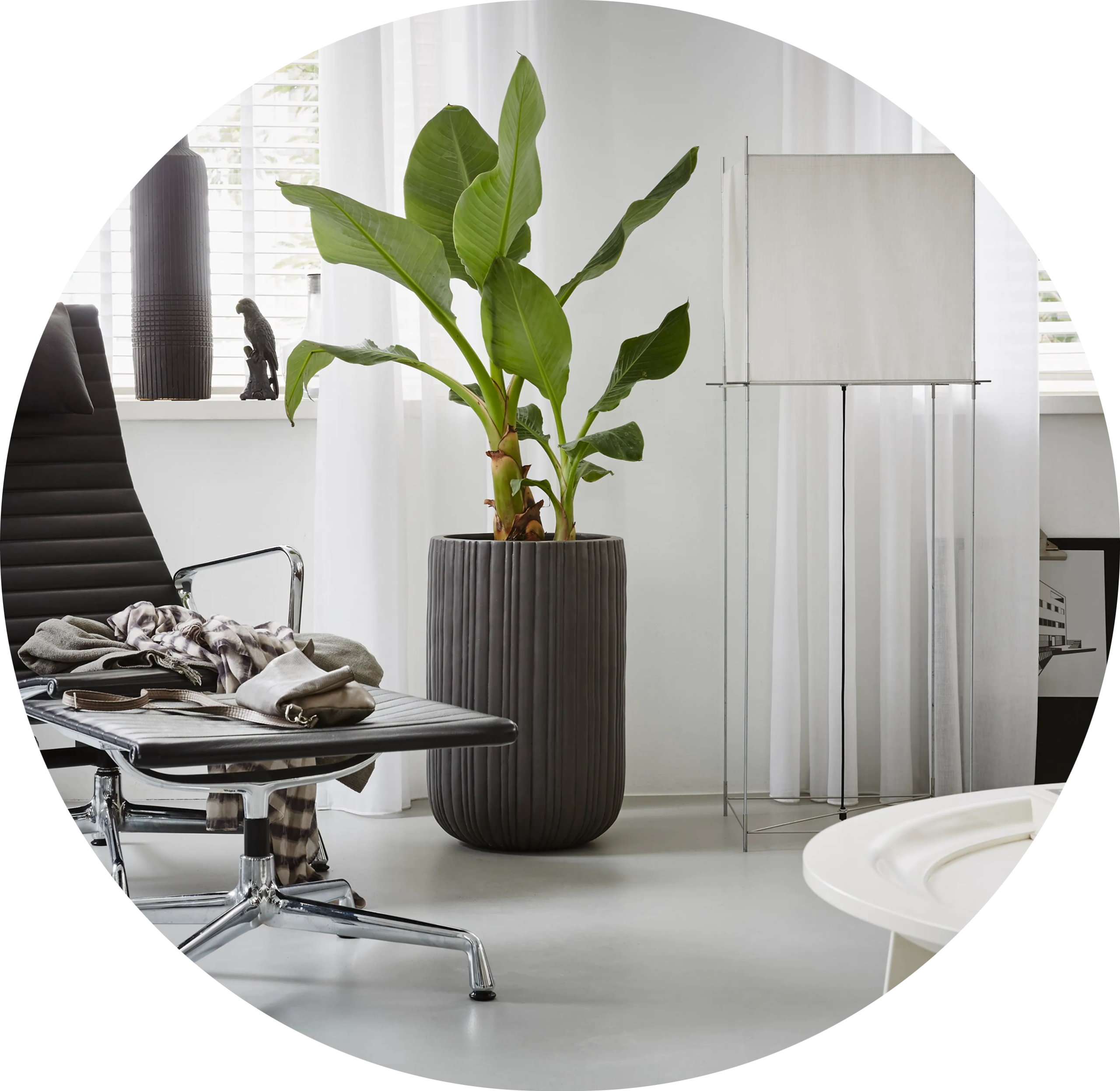 Vi har 30 års erfarenhet av att arbeta med växtinredning och importera både växter samt krukor. Vår mission är att våra växter ska främja välbefinnande på arbetsplatser.